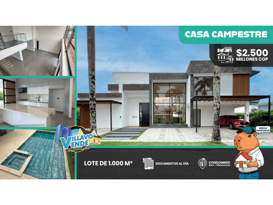 Casa campestre de lujo ubicada en el exclusivo Condominio Barú, a solo 4 km del centro de Villavicencio. Terreno de 1.000 m², construcción de 750 m², piscina privada de 140 m², áreas duras de 140 m².